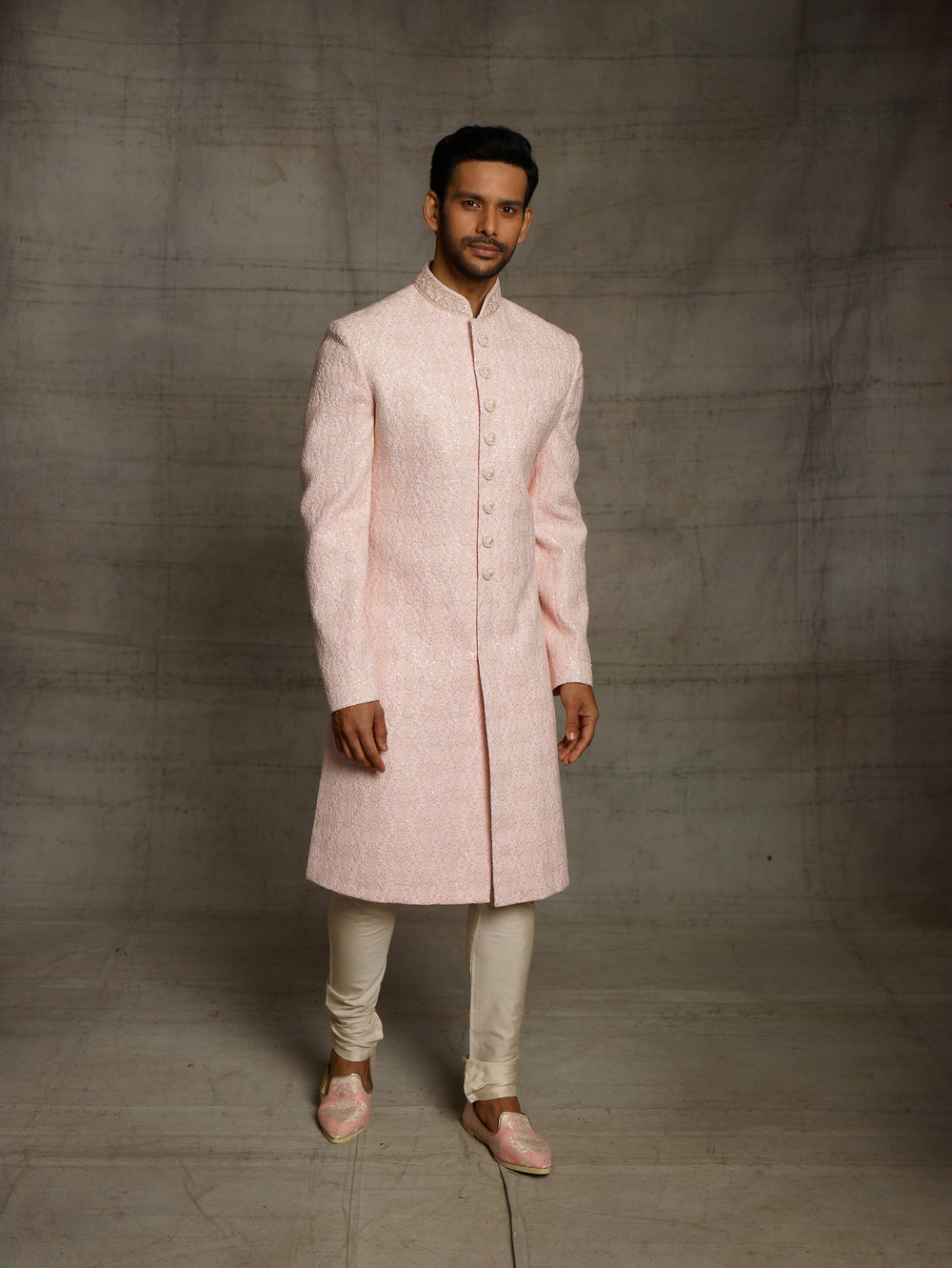 Lakhnavi sherwani in pink.