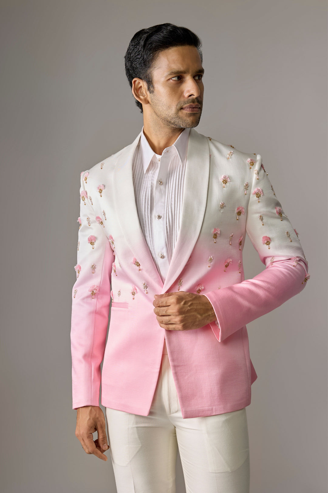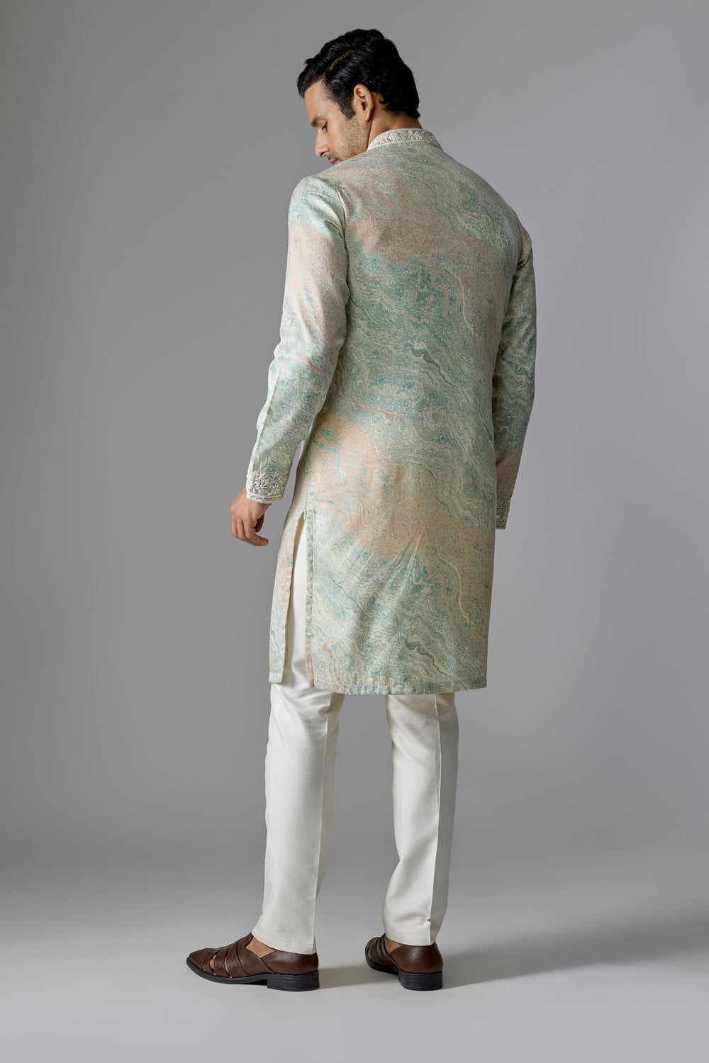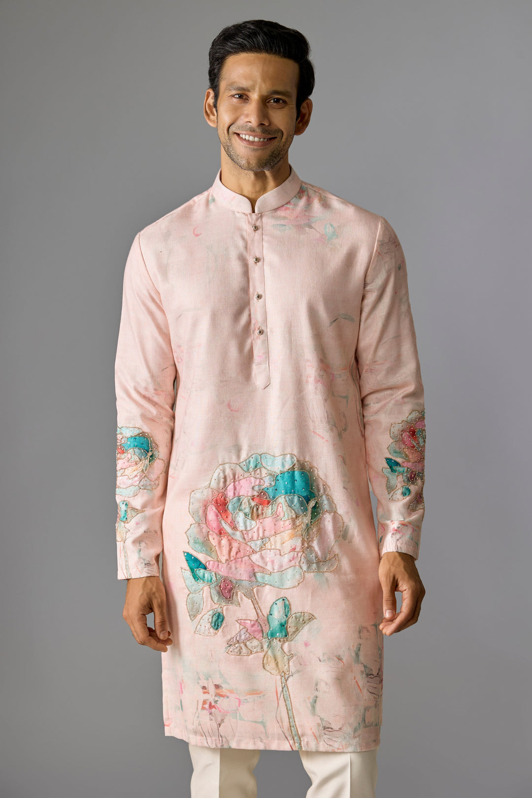 Powder Pink Silk Sherwani in Floral & Dome Motifs