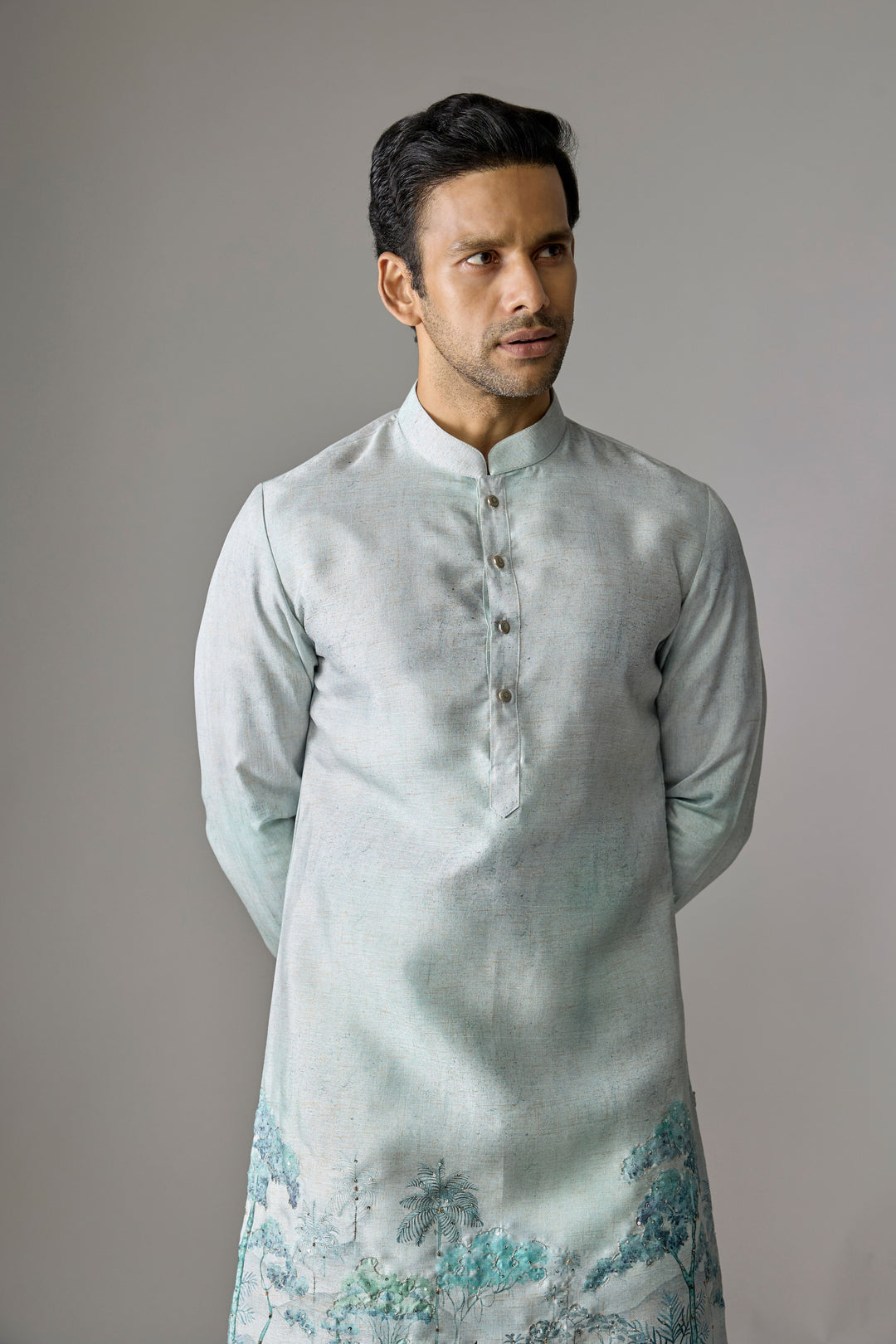 Sky Blue Resham work Silk Kurta Set with Dupatta