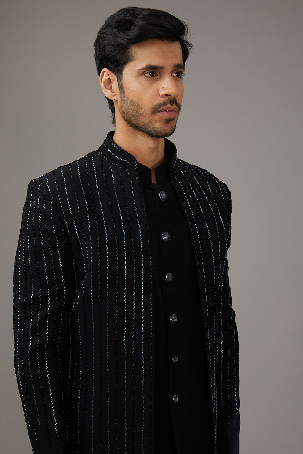 ReChannel fusion Indo-Westerns blend traditional Indian designs with modern western styles. Classic indowestern outfits are perfect for pre-wedding functions like sangeet and mehendi, offering a stylish yet comfortable option for the groom & groomsmen .The embroidered jodhpuri bandhgala sets in Rutba collection feature detailing, making them a perfect choice for any wedding event. These modern indowestern outfits offer a sophisticated look that seamlessly combines tradition with modernity with flairs.Linen and Silk Indo-Westerns are crafted from luxurious fabrics, these classic Indo-Westerns provide a perfect balance of comfort and elegance. The hand-embroidered designs add a touch of sophistication, making them ideal for any wedding & Pre Wedding ceremony. For Indo-western Theme party or Customization book our appointment now!