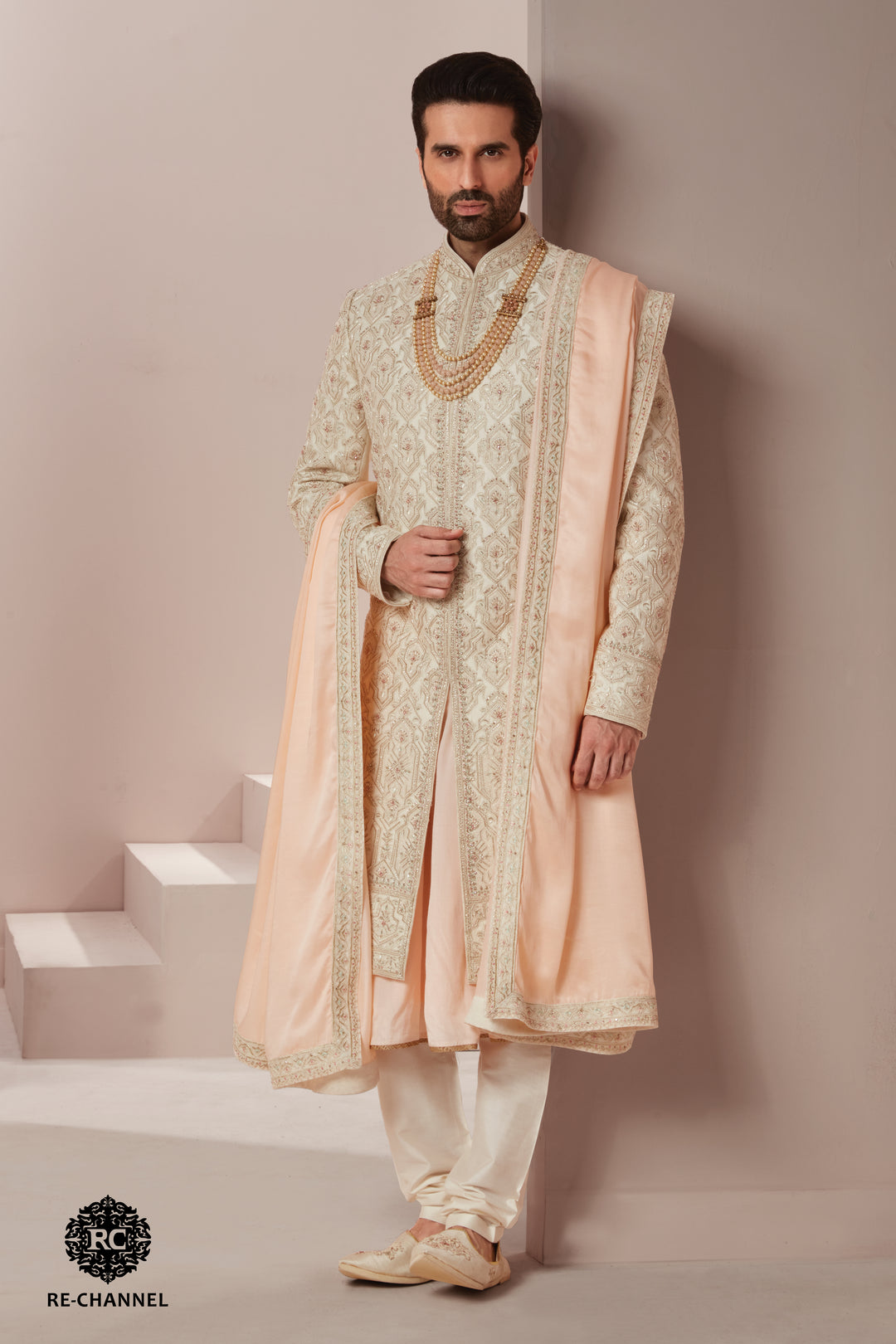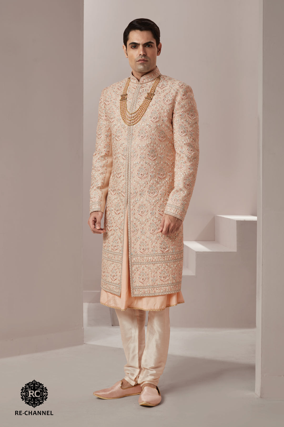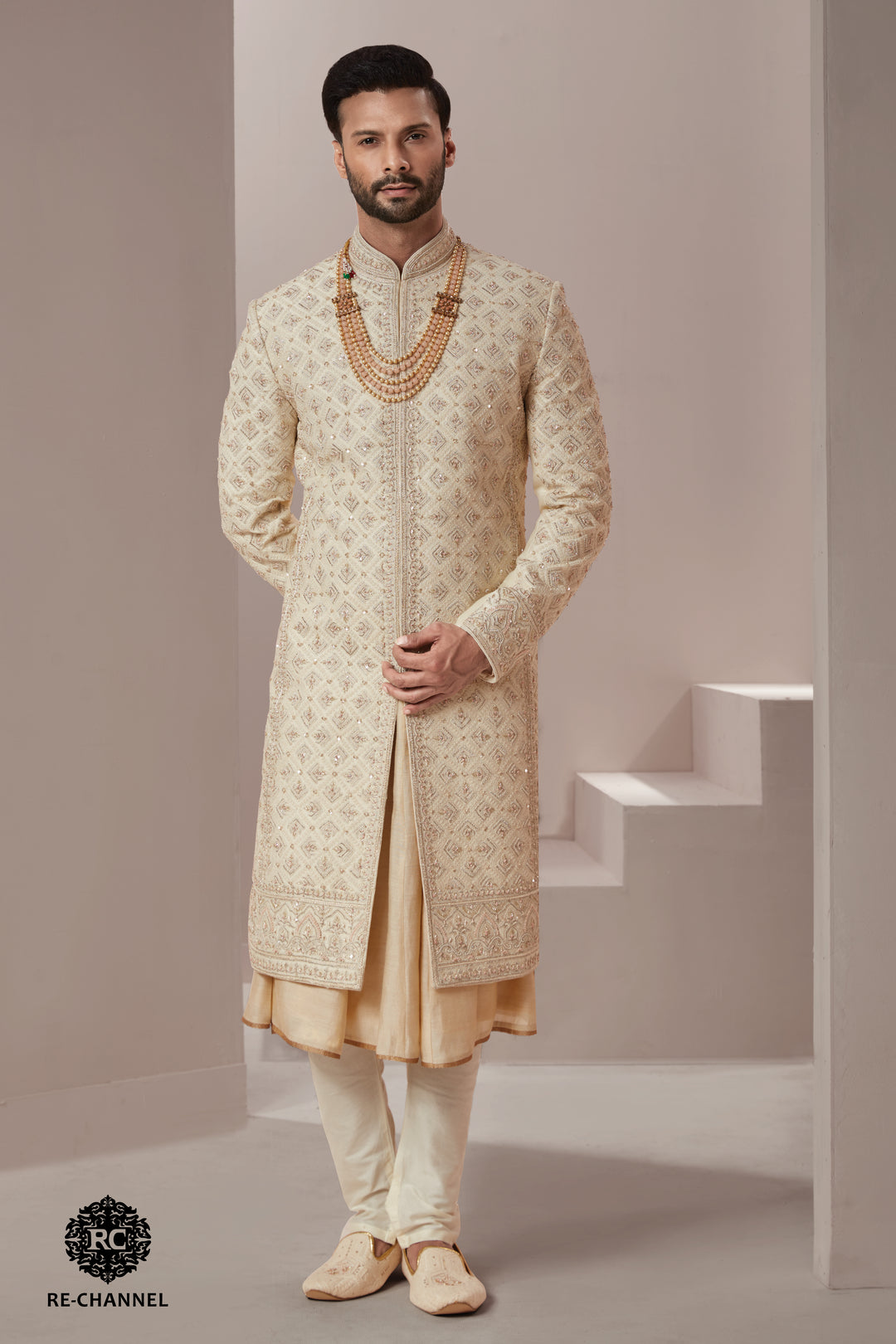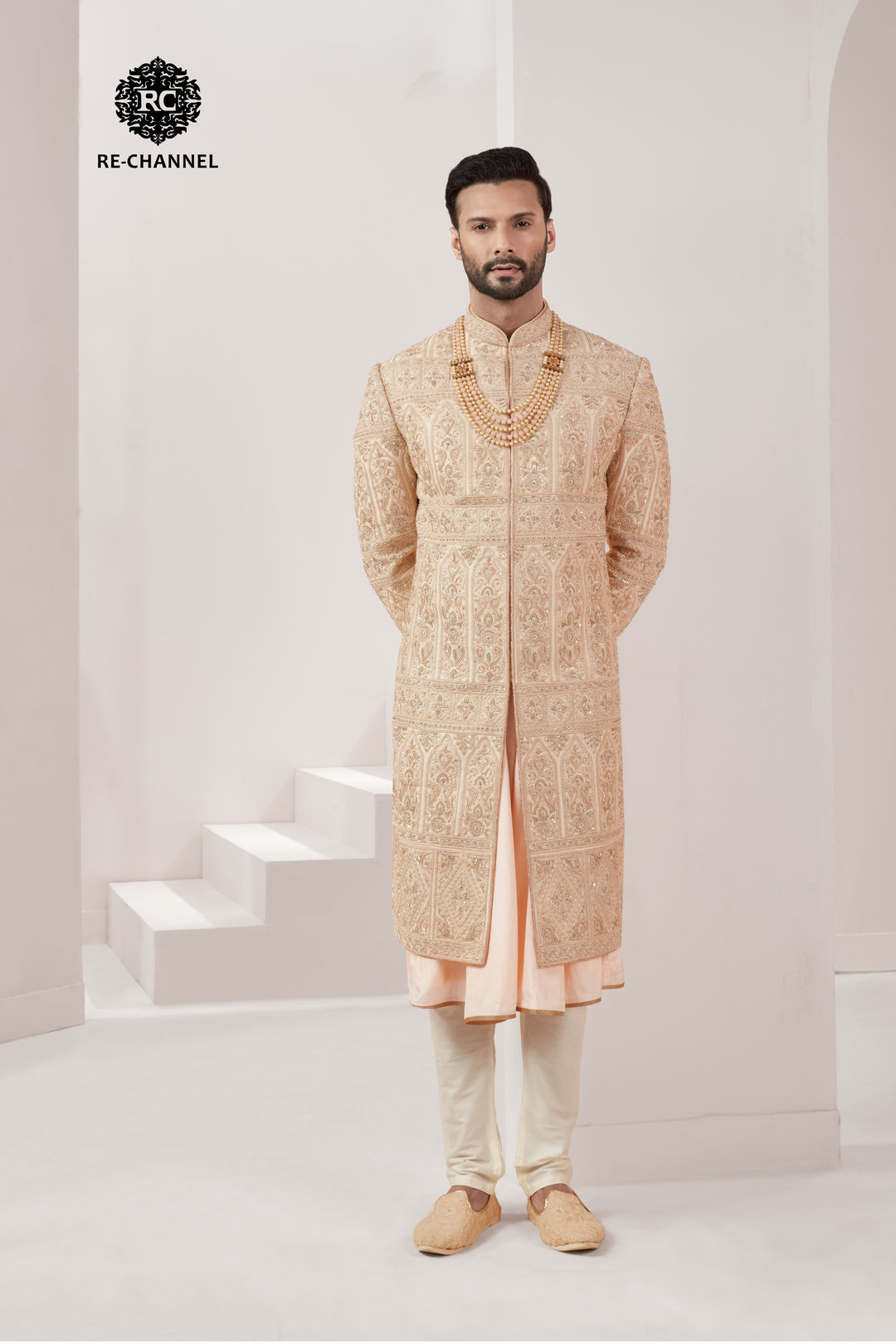 Welcome to ReChannel’s Online store, where a vast range of classic groom sherwani awaits you! We have a traditional legacy with a plethora of options, may it be ethnic or contemporary designs you name it, we give it! We ensure you have a seamless journey to pick your right fit for your THE DAY, with our passionate craftsmanship & exclusive designs made by our in-house designers, perfect material with ease of comfort & most importantly customization option that can make the perfect royal wedding sherwani for groom, groomsmen. We also accept themed sherwani for men, where groomsmen, family, and friends can match your vibe. We provide luxury sherwanis with customization, these handcrafted sherwanis you can wear for other grand occasions, or even last minute invites in your circle.