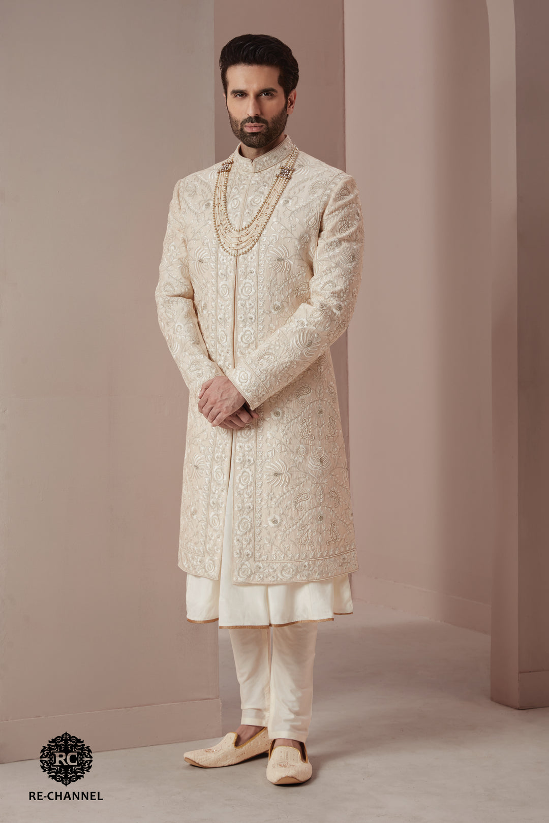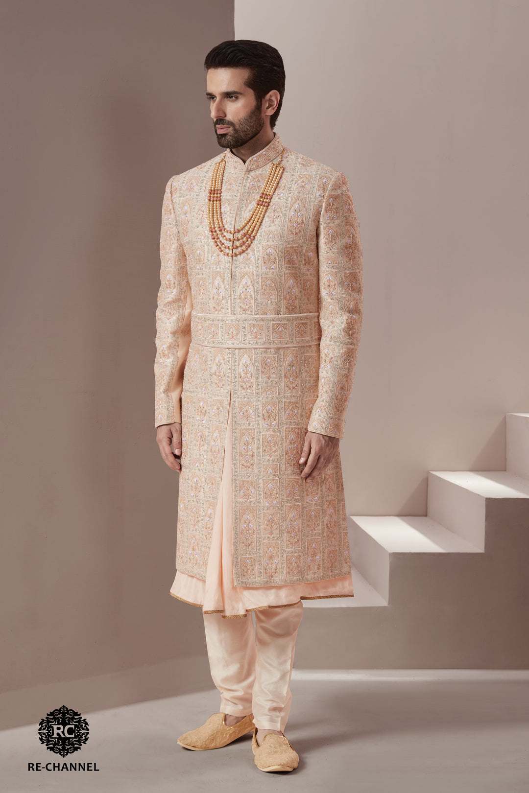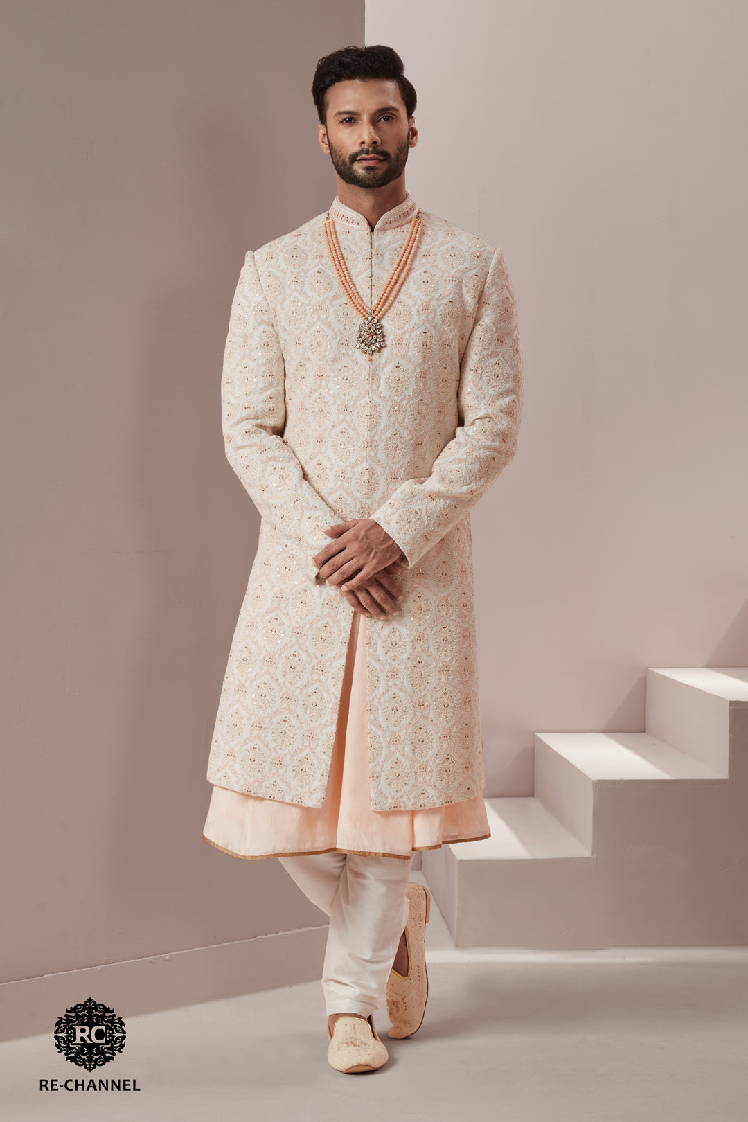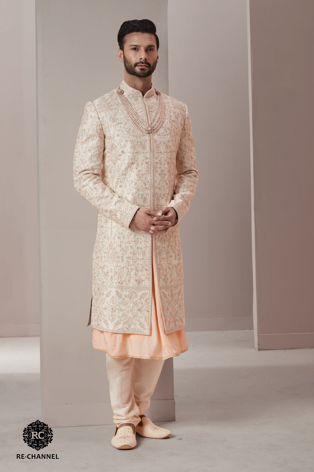 Welcome to ReChannel’s Online store, where a vast range of classic groom sherwani awaits you! We have a traditional legacy with a plethora of options, may it be ethnic or contemporary designs you name it, we give it! We ensure you have a seamless journey to pick your right fit for your THE DAY, with our passionate craftsmanship & exclusive designs made by our in-house designers, perfect material with ease of comfort & most importantly customization option that can make the perfect royal wedding sherwani for groom, groomsmen. We also accept themed sherwani for men, where groomsmen, family, and friends can match your vibe. We provide luxury sherwanis with customization, these handcrafted sherwanis you can wear for other grand occasions, or even last minute invites in your circle.