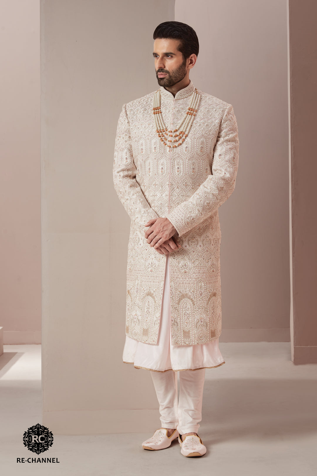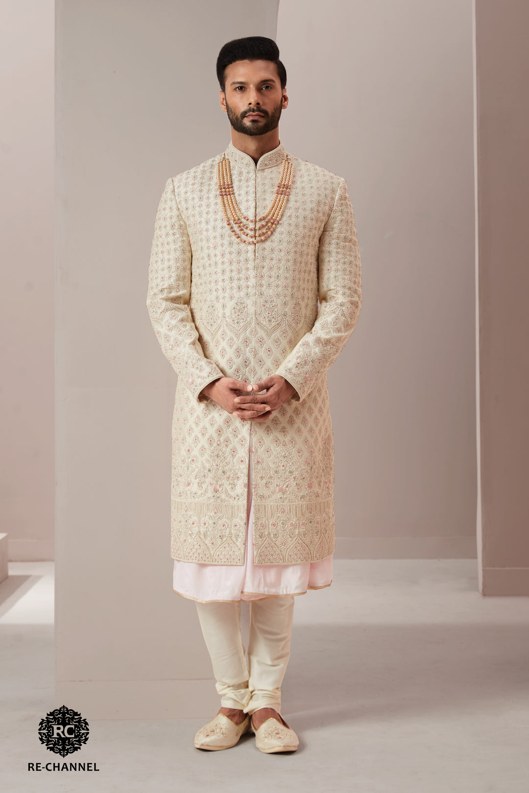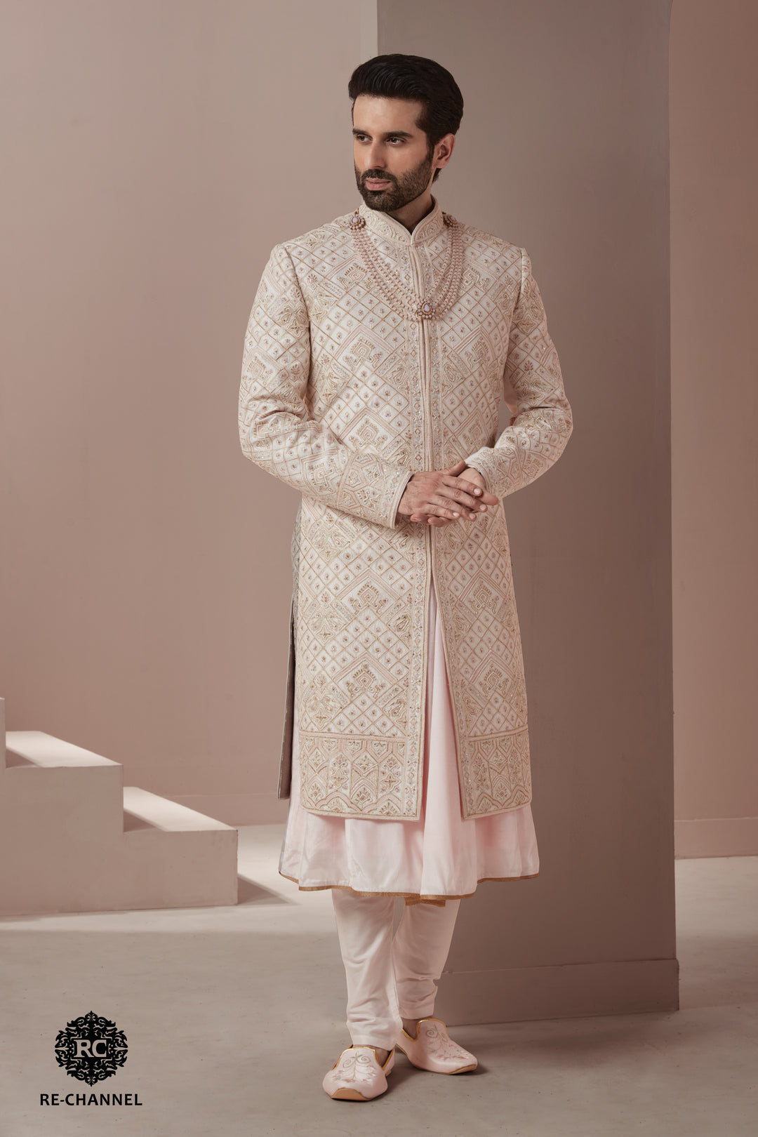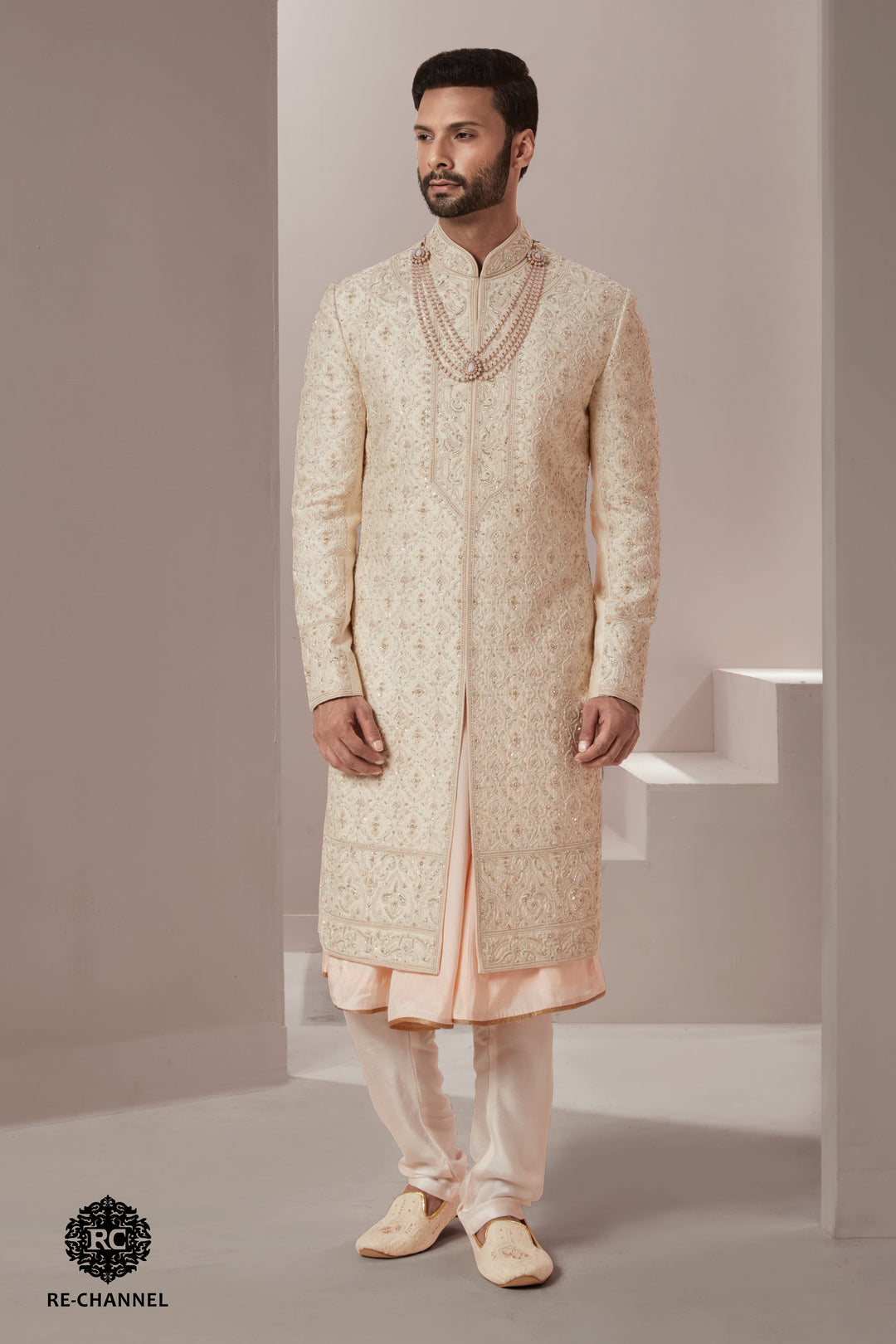 Welcome to ReChannel’s Online store, where a vast range of classic groom sherwani awaits you! We have a traditional legacy with a plethora of options, may it be ethnic or contemporary designs you name it, we give it! We ensure you have a seamless journey to pick your right fit for your THE DAY, with our passionate craftsmanship & exclusive designs made by our in-house designers, perfect material with ease of comfort & most importantly customization option that can make the perfect royal wedding sherwani for groom, groomsmen. We also accept themed sherwani for men, where groomsmen, family, and friends can match your vibe. We provide luxury sherwanis with customization, these handcrafted sherwanis you can wear for other grand occasions, or even last minute invites in your circle.