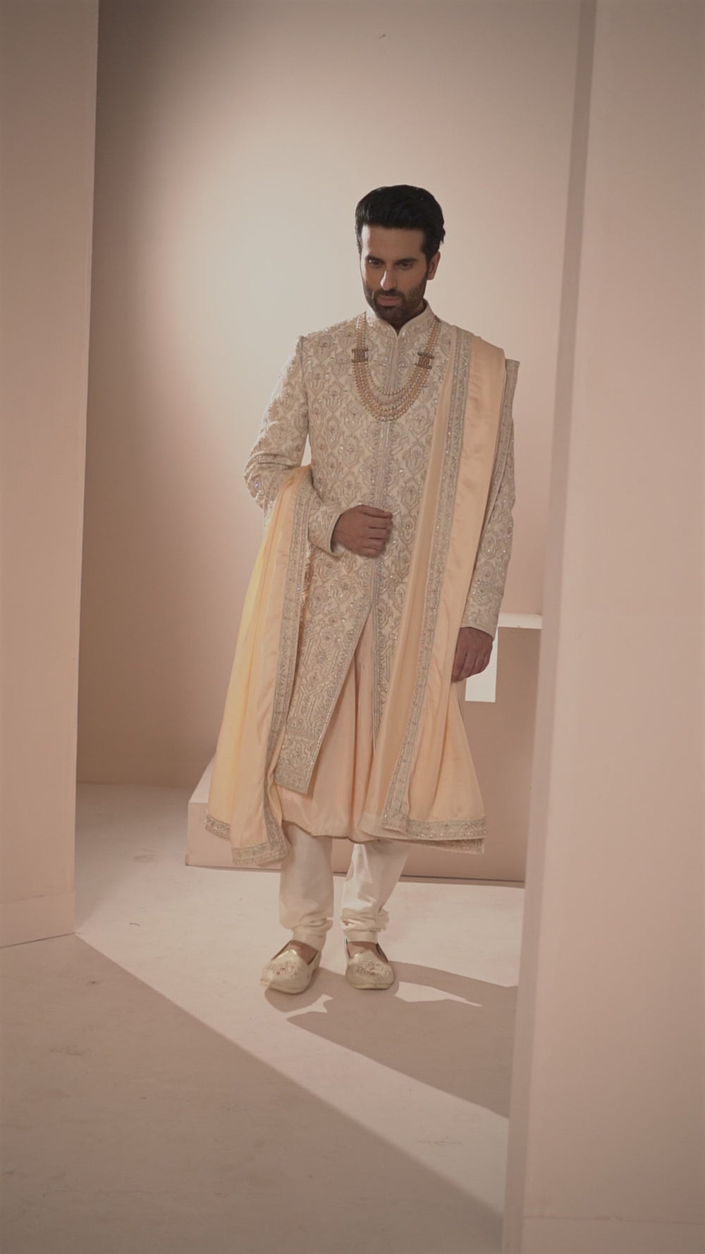 Step into the world of the best real ReChannel experience, where our vast network of offerings ensures that every royal Sherwani you pick, is on display and available for trials and is the perfect fit for your special day. From classic to modern designs, our studio has every taste and style like indo western sherwani, sherwani jackets, and regal wedding sherwani for men. Whether you're the groom, groomsman, or a guest, our extensive collection of sherwanis ensures that everyone finds the perfect fit for the big day.