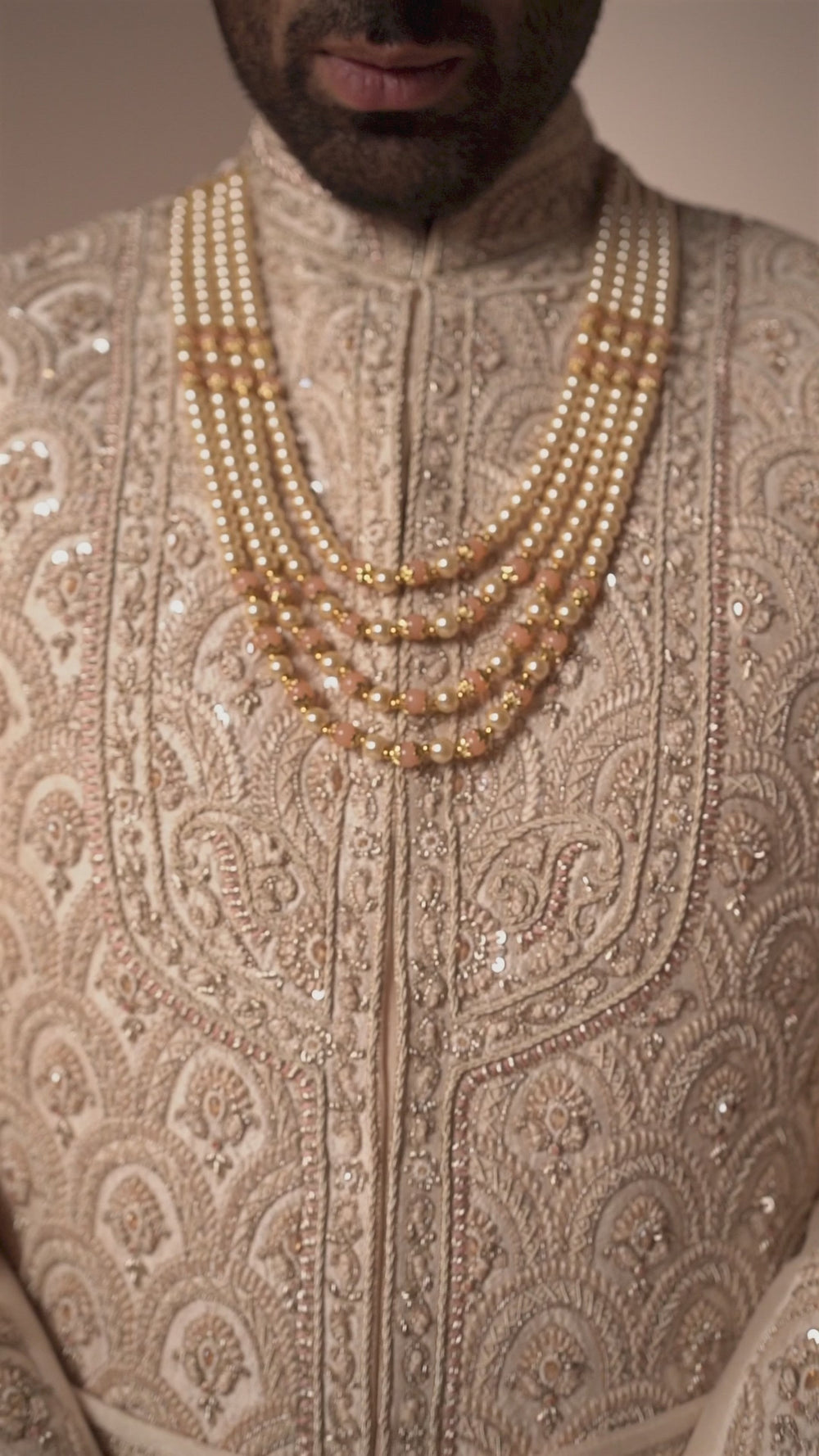Elevate your sherwani attire with ReChannel’s extensive range of accessories. From safas and kalangis to necklaces (malas), mojdis, shoes, dupattas/shawls, and kamarbandhs, we have every accessory you need, to truly bring out the royalty of your elegant groom sherwani outfit. Our accessories are carefully curated to complement your sherwani, adding an extra touch of elegance and sophistication to your perfect outfit. Complete your look with our wedding sherwani dress and royal groom sherwani accessories for both groom & groomsmen.
