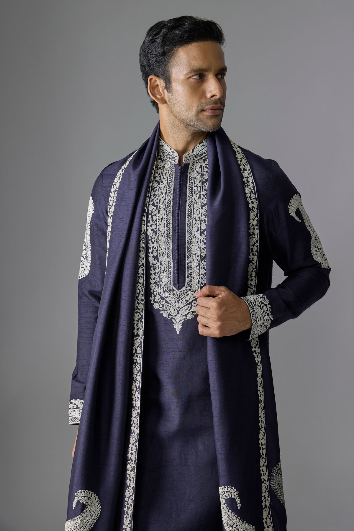 Product Details: Elevate your ethnic style with this elegant Blue Silk Kurta, crafted for modern men who appreciate traditional charm. Made from premium silk fabric, this kurta offers a luxurious sheen and smooth texture. The intricate thread embroidery adds a refined touch of craftsmanship, making it a perfect choice for weddings, festive occasions, and cultural celebrations.