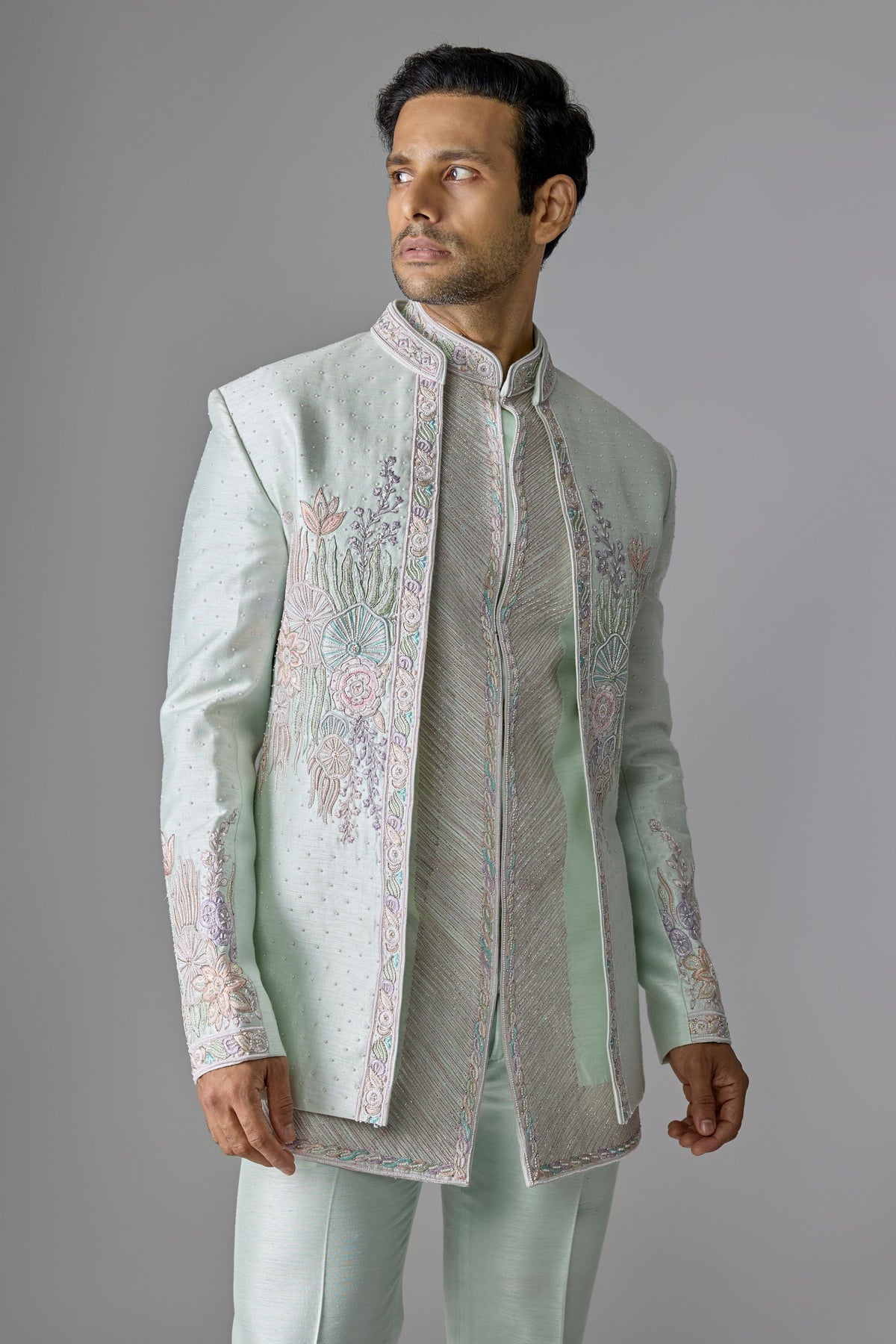Mint Silk Textural Indo-Western